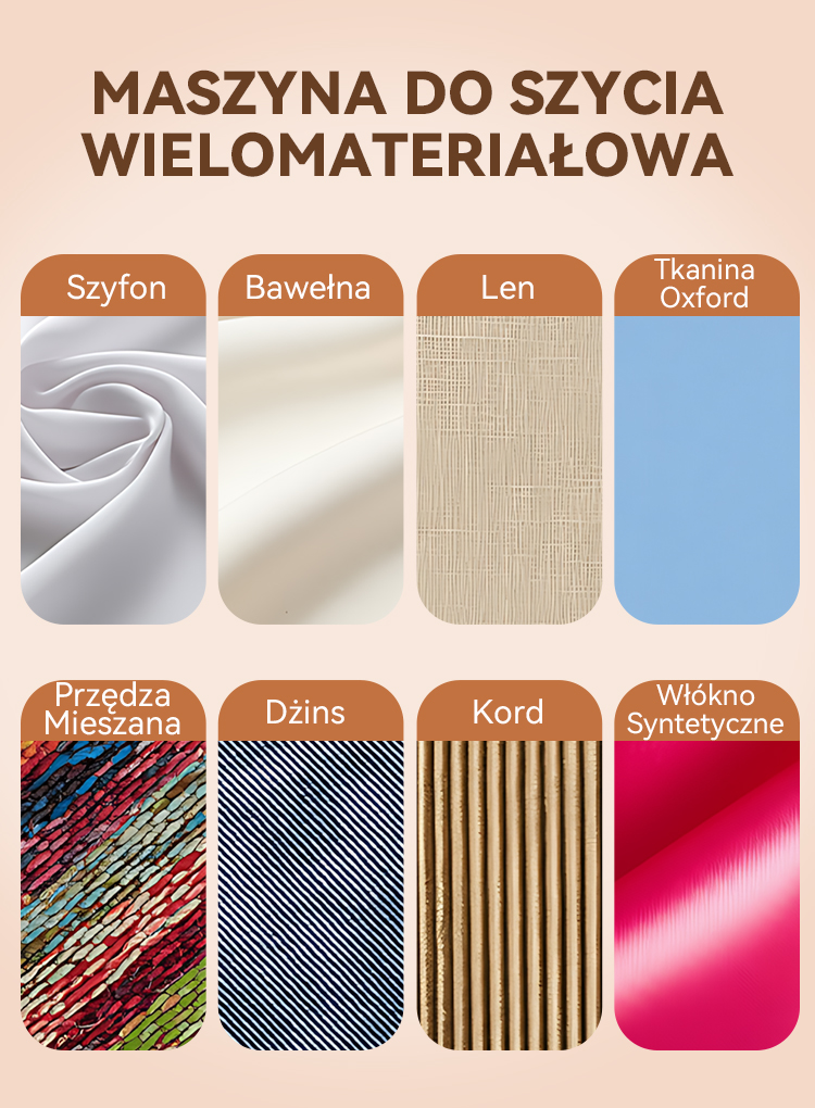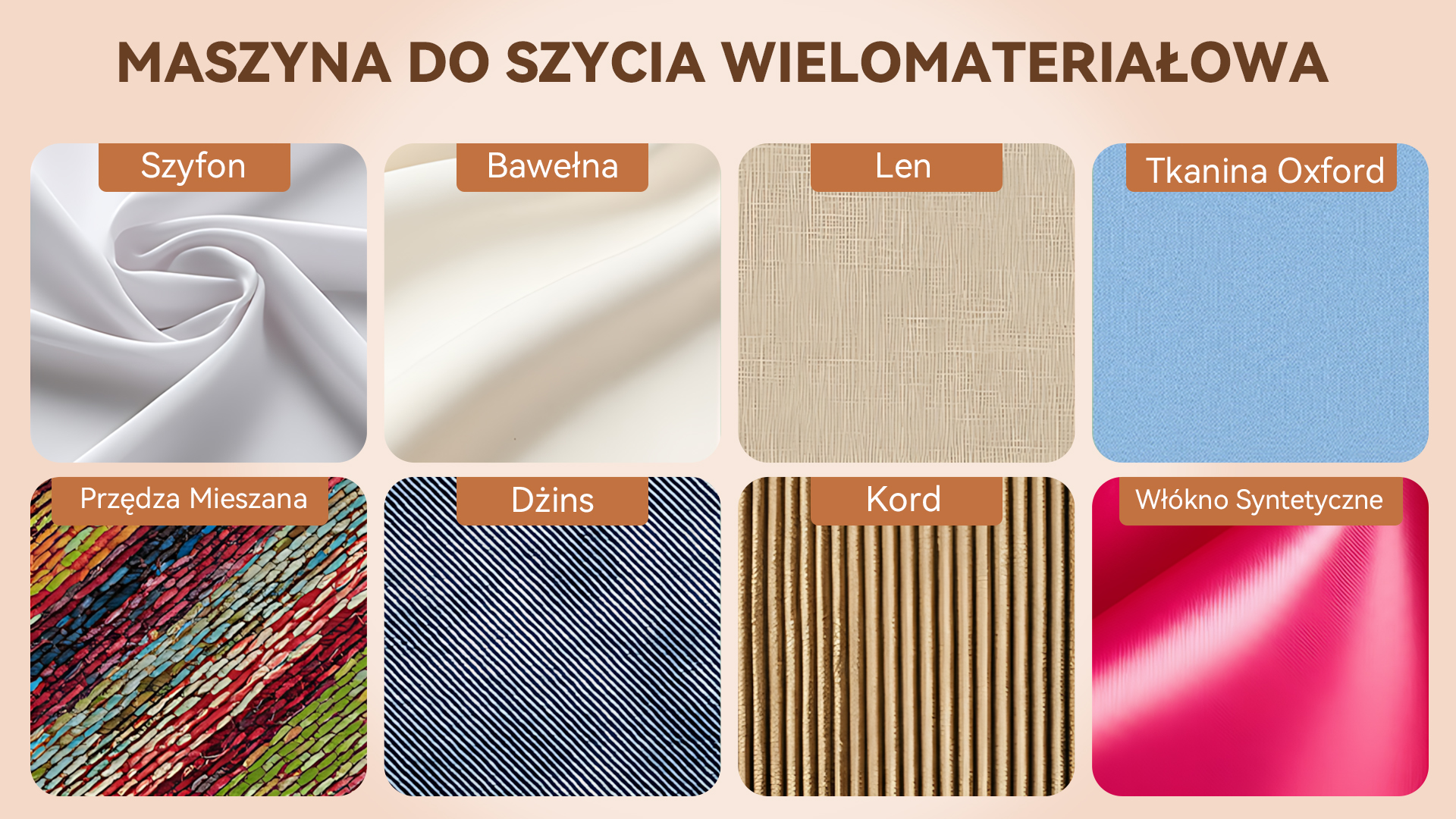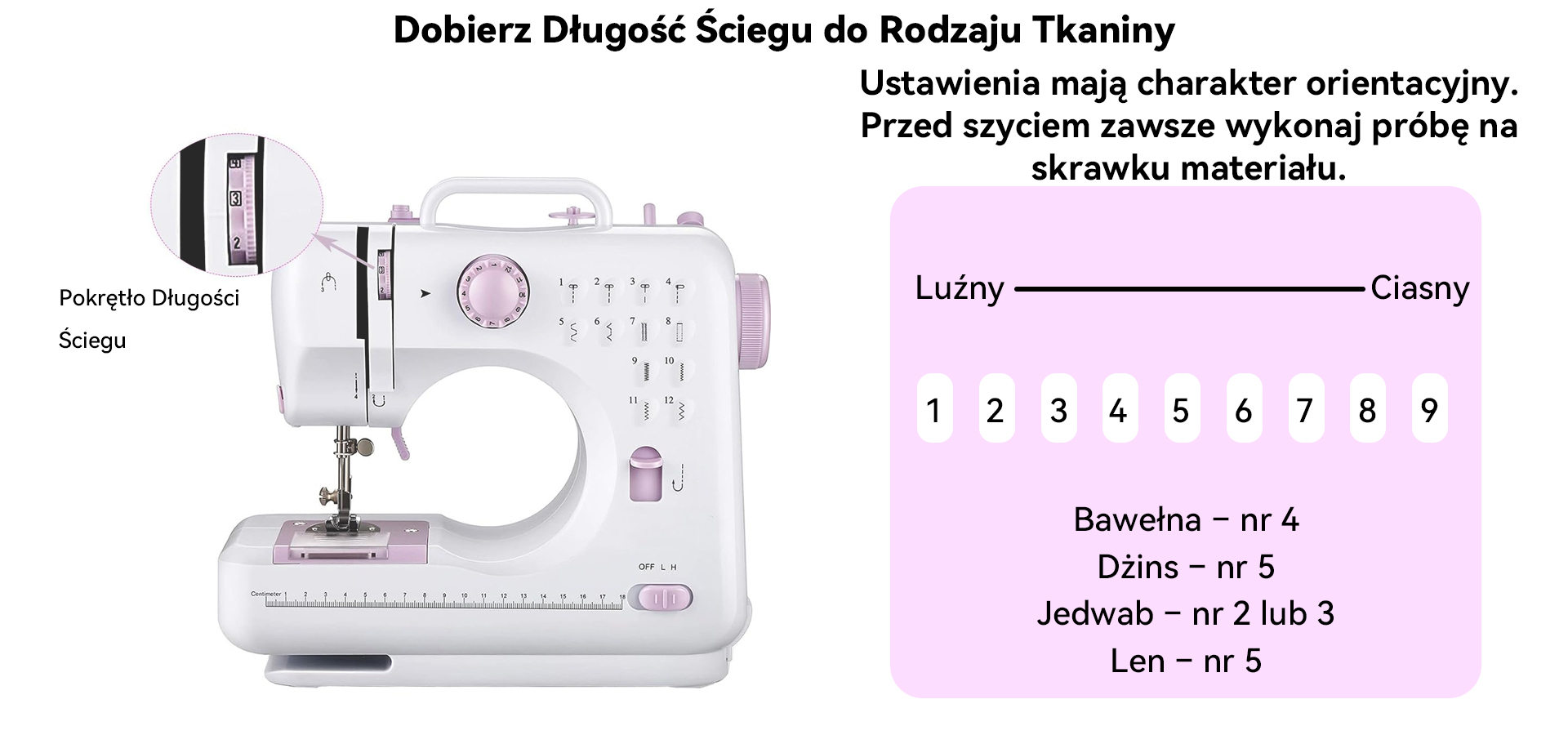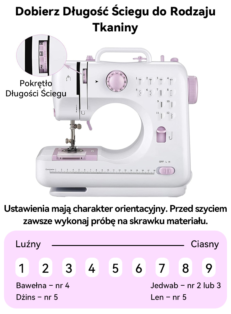 Ściegi zygzakowe i dziurki na guziki (9–12): Pozwalają na różnorodne zadania, takie jak owerlokowanie, tworzenie dziurek na guziki i przyszywanie guzików.