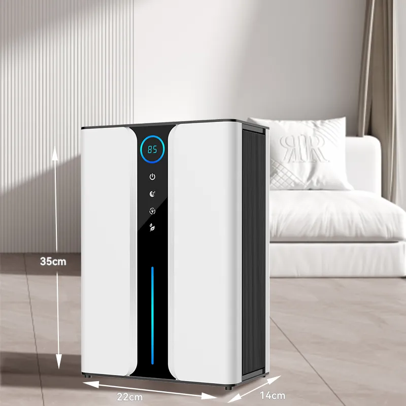 Wymiary tego przenośnego osuszacza wynoszą w przybliżeniu: 22 (dł.) * 14 (szer.) * 35 (wys.) centymetrów dla obszaru o powierzchni 93 metrów kwadratowych. Idealny do stosowania jako osuszacz do sypialni, osuszacz do szafy, osuszacz do łazienki. Szeroko stosowany w piwnicy, garażu, kuchni i przy innych okazjach.