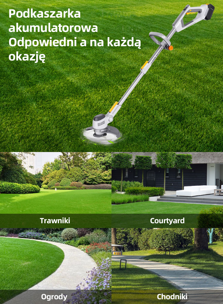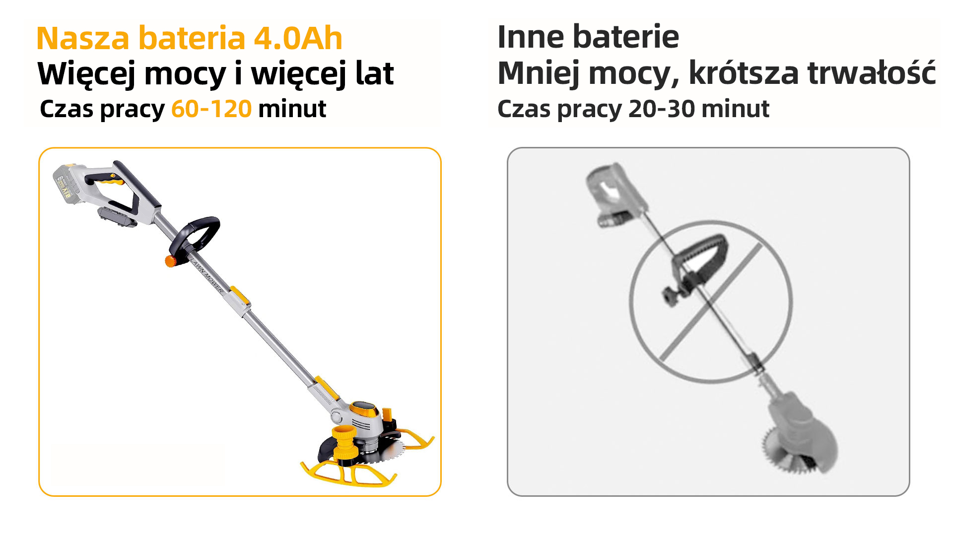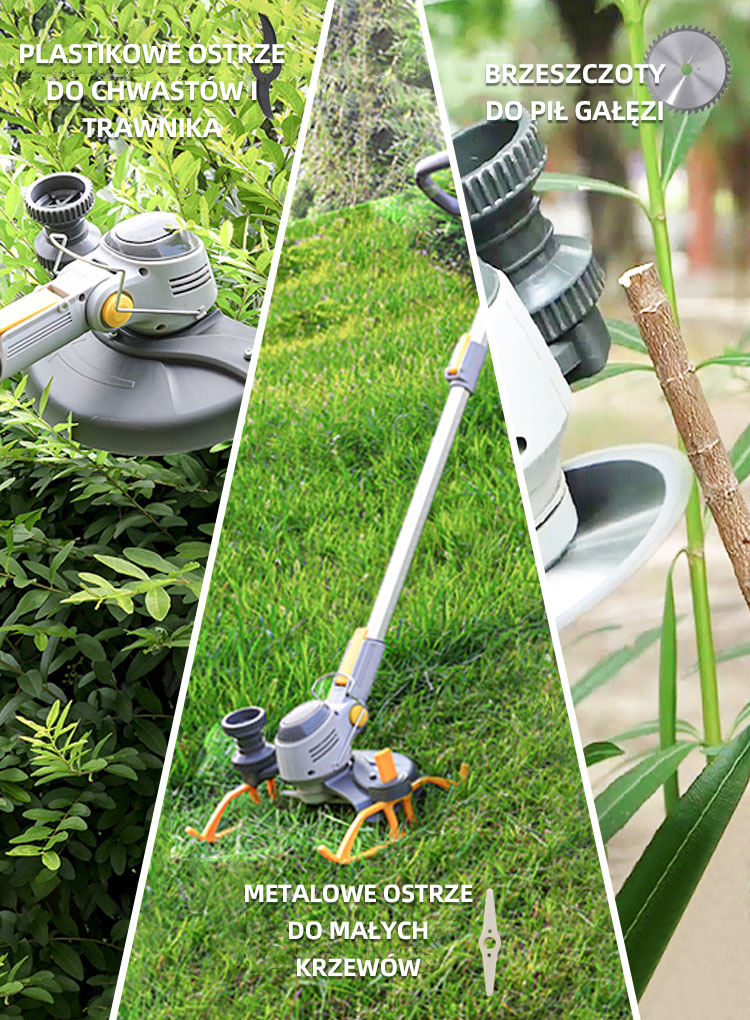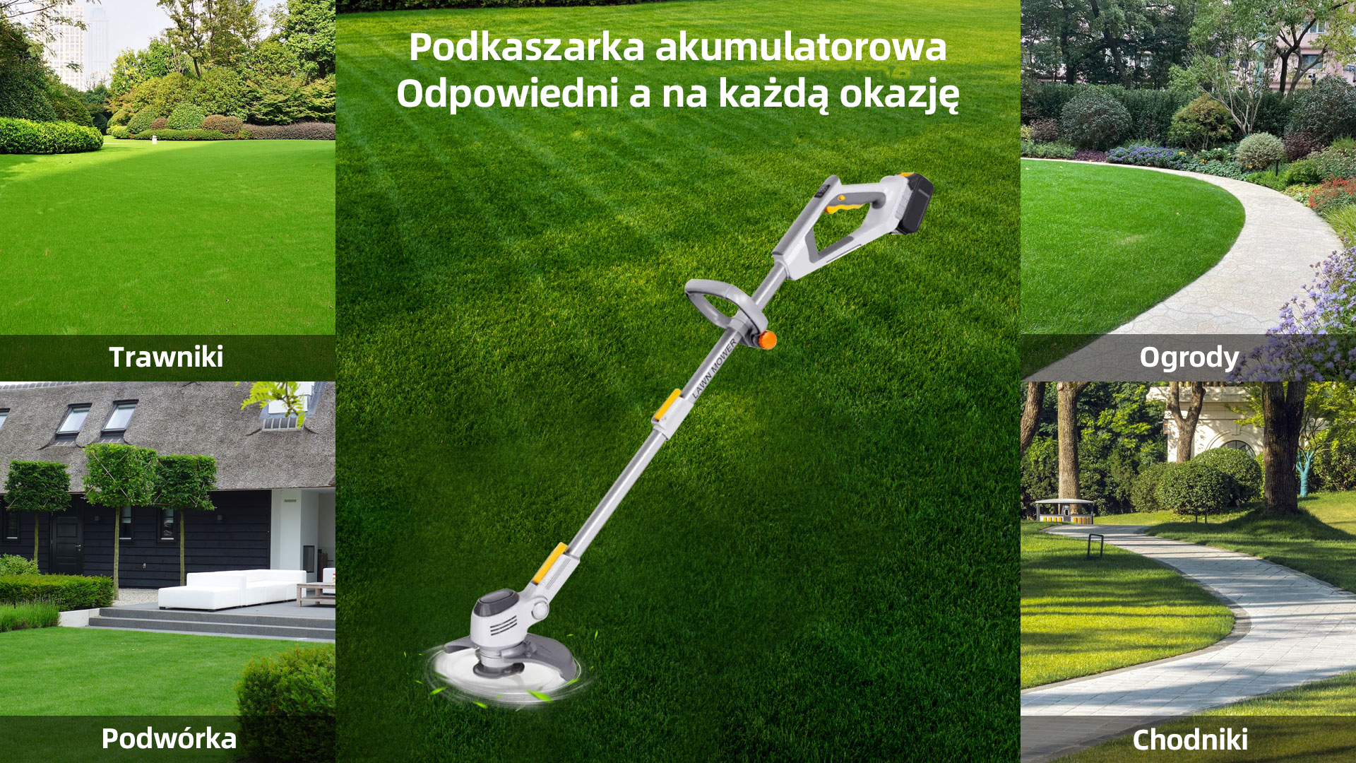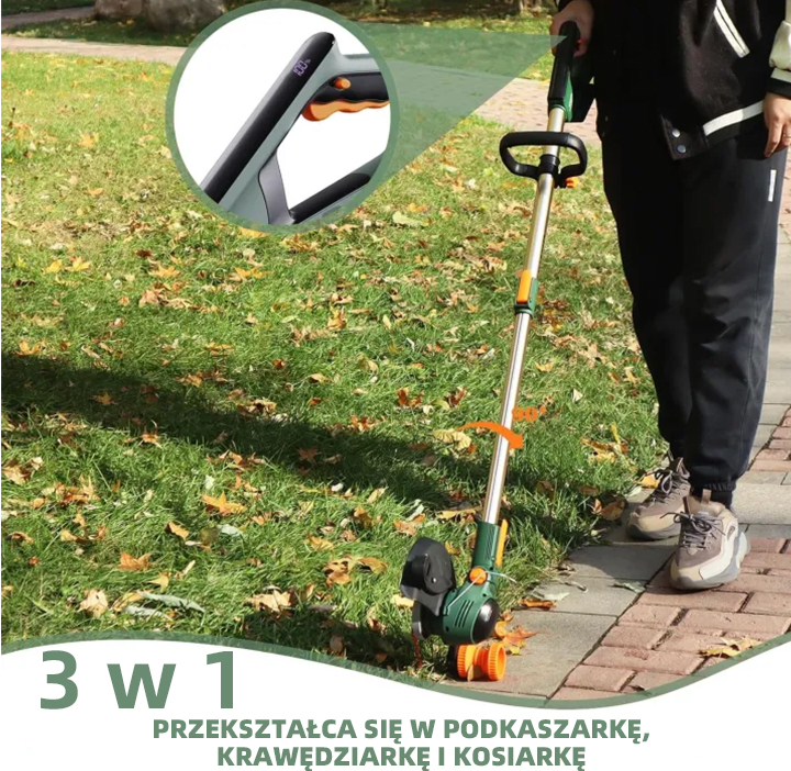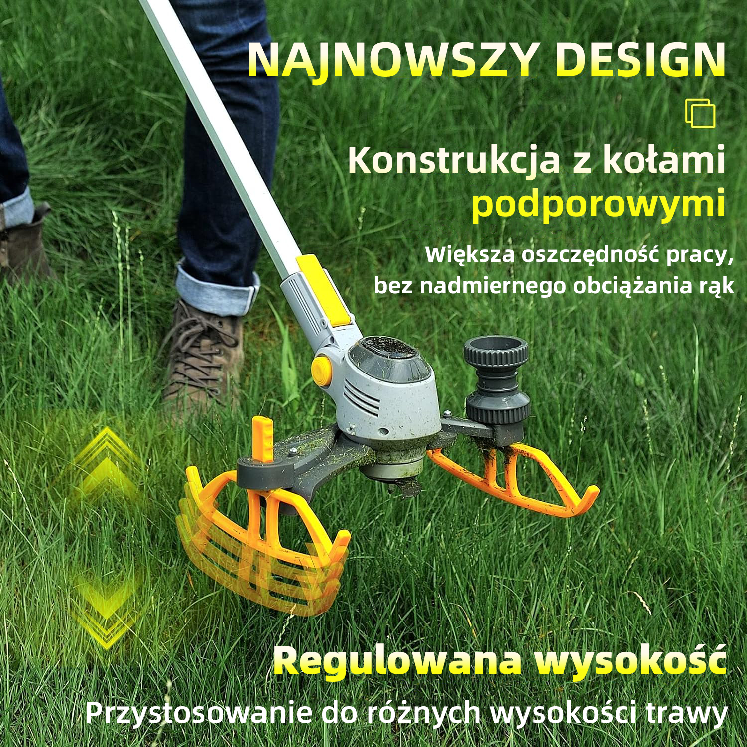 Po intensywnych badaniach i rozwoju wprowadzono na rynek pierwszy model bezprzewodowego urządzenia 3w1 – podkaszarki, krawędziarki i mini-kosiarki w jednym. Dodano również ślizgowe koła podporowe, dzięki czemu nie musisz się schylać podczas koszenia, a obsługa jedną ręką jest jeszcze łatwiejsza, co upraszcza prace ogrodowe.