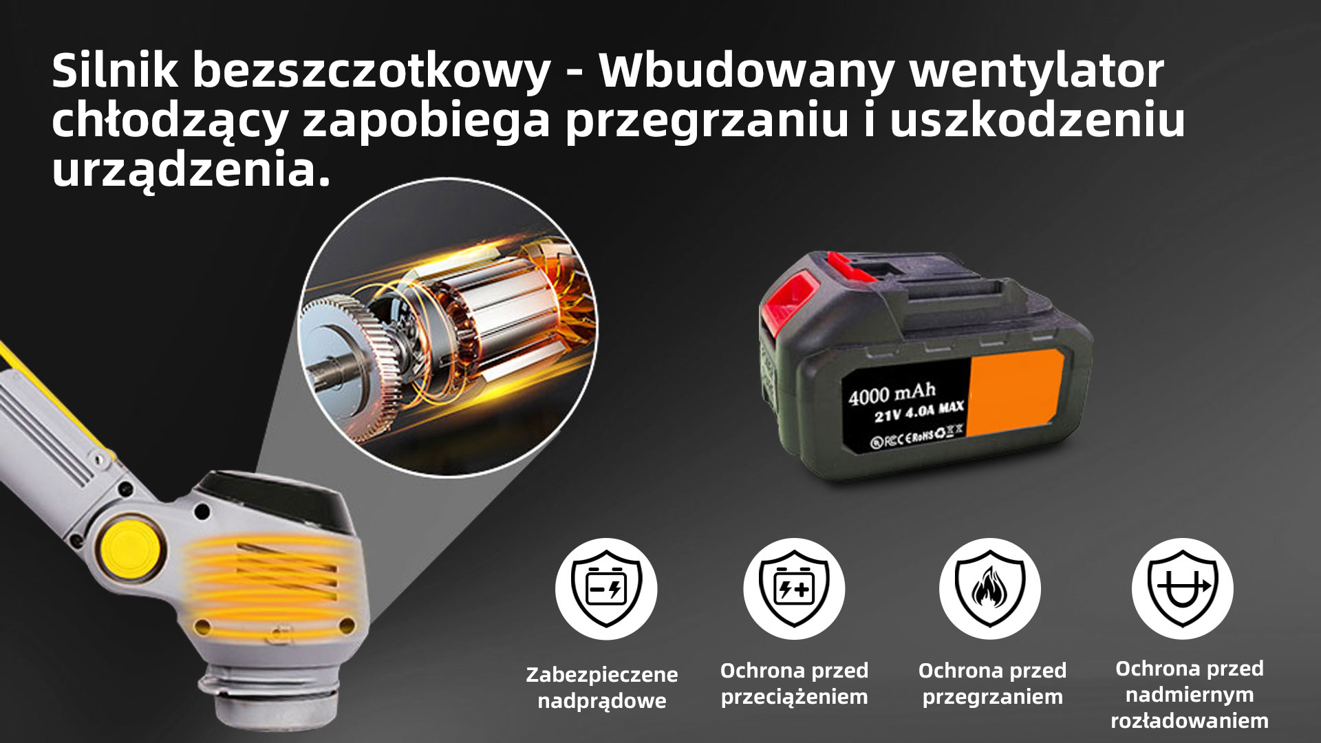 Obrotowa głowica silnika może być dostosowana do Twoich różnych potrzeb w zależności od sytuacji.